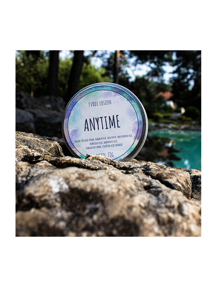 Anytime je prirodni ručno rađen tvrdi losion namenjen za negu svih tipova kože.