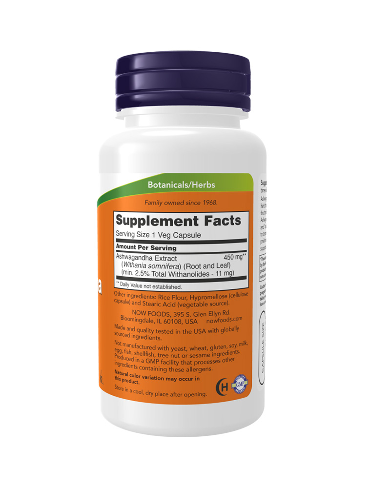 Ashwagandha 450 mg, Now Foods, 90 veg kapsula