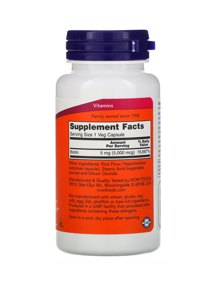 Biotin 5000 mcg, Now Foods, 60 veg kapsula