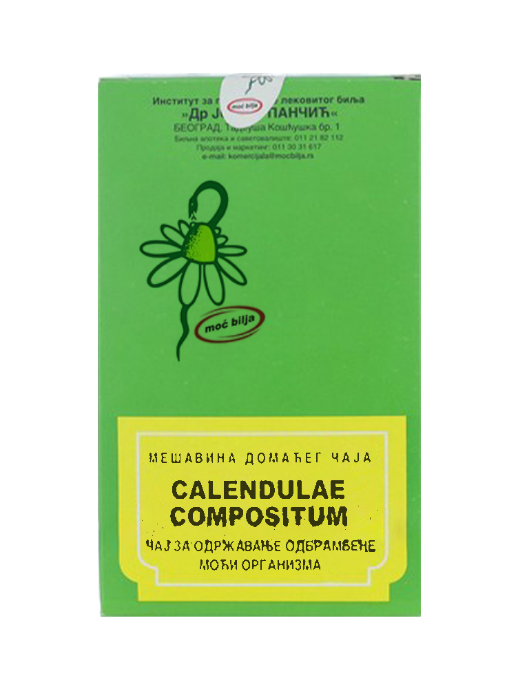Calendulae compositum čajna mešavina preporučuje se: kod pada imuniteta, kod cista i benignih tumora, kao pomoć pri oporavku nakon dugotrajnih, iscrpljujućih bolesti i posle hemioterapije. akođe, može se koristiti kao pomoć u tretmanu viralnih i retroviralnih infekcija.