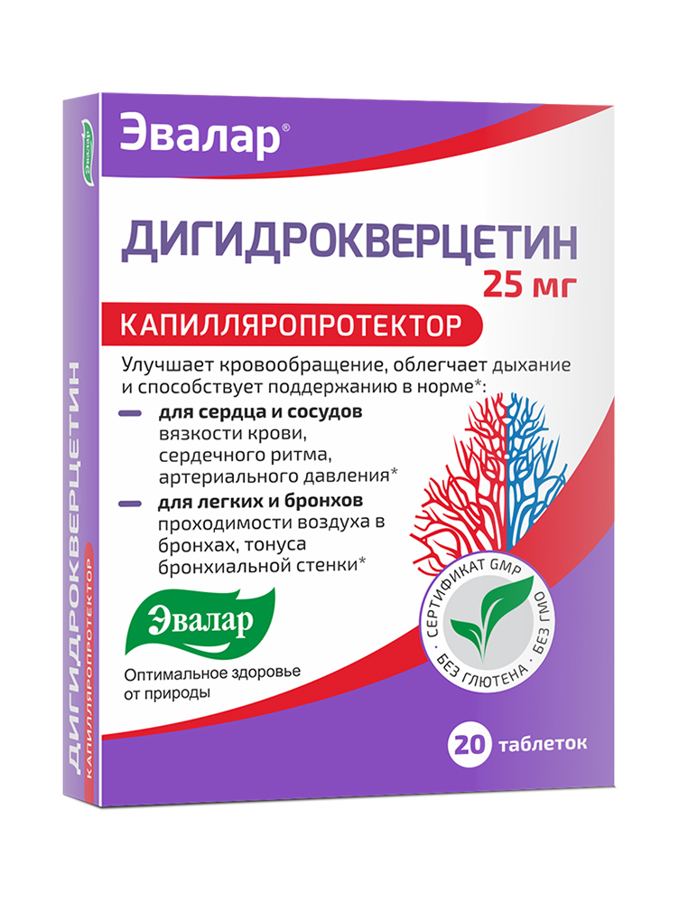 Dihidrokvercetin 25 mg, Evalar, 20 tableta