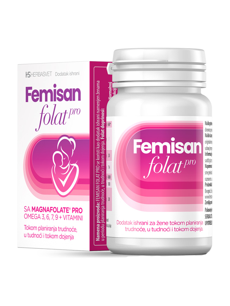 Femisan Folat Pro kapsule namenjene su ženama u periodu planiranja trudnoće, u trudnoći i tokom dojenja.