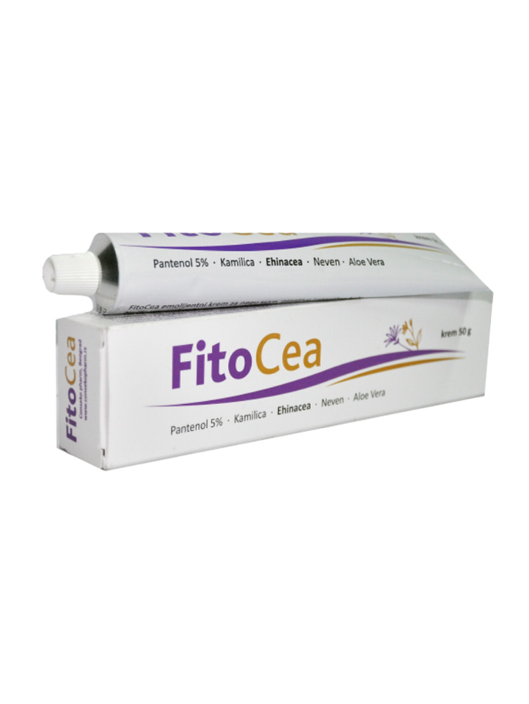 FitoCea krem je regenerativna krema na bazi ehinacee sa dodatkom 5% pantenola, ekstrakta nevena, kamilice i soka aloje, uz visoko hidratantnu mešavinu ksilitola i glicerina. Jača prirodni imunitet kože i pruža zaštitu od infekcija. Efikasna je za tretman ekcema, herpesa, kože tretirane zračenjem, ožiljaka, poderotina te grube i ispucale kože.