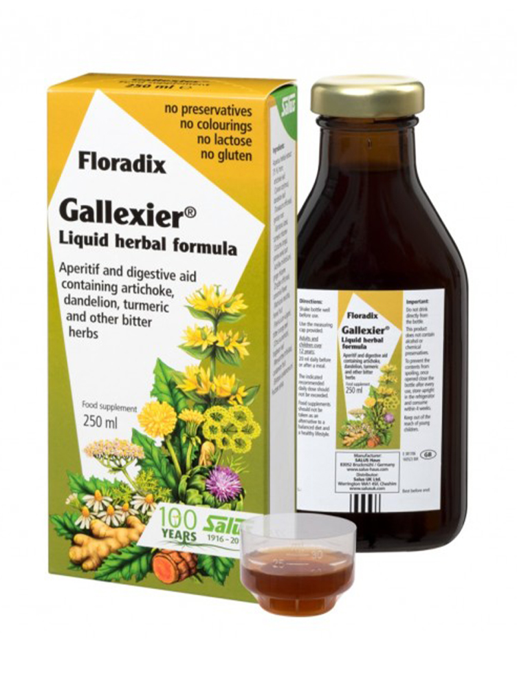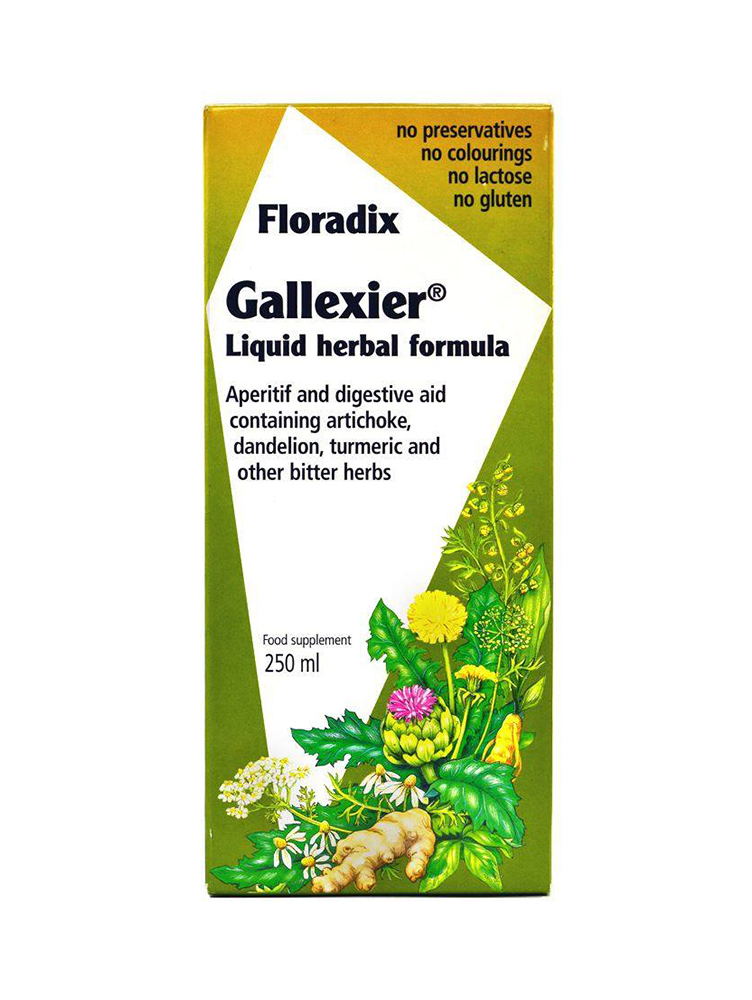 Floradix Gallexier je tečna formula na bazi artičoke, maslačka, kurkume, lincure i drugih gorkih biljaka, koja pomaže u rešavanju gastričnih tegoba.