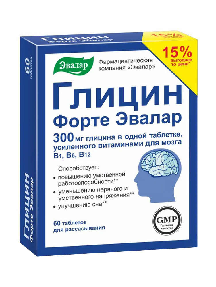 Početna Lekovito bilje Biljne formule Glicin Forte, Evalar, 60 tableta