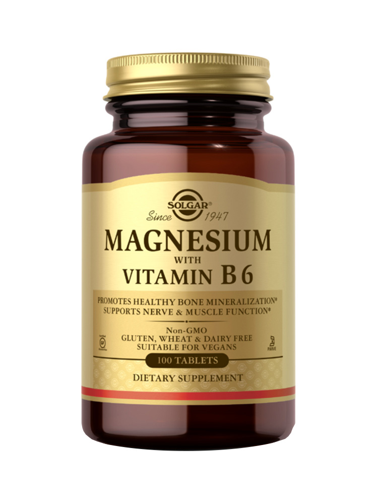Magnezijum je ključni mineral neophodan svakom organu u telu. Pomaže u regulisanju transporta i apsorpcije kalcijuma. Stimulisanjem lučenja kalcitonina, utiče na priliv kalcijuma u ​​kost i promoviše optimalnu mineralizaciju kostiju. Magnezijum je neophodan za nesmetano funkcionisanje nadbubrežnih žlezda i za normalizaciju simptoma povezanih sa stresom, dok istovremeno podržava oslobađanje ćelijske energije i funkciju nerava i mišića. Vitamin B6 podržava energetski metabolizam i zdravlje nervnog sistema.