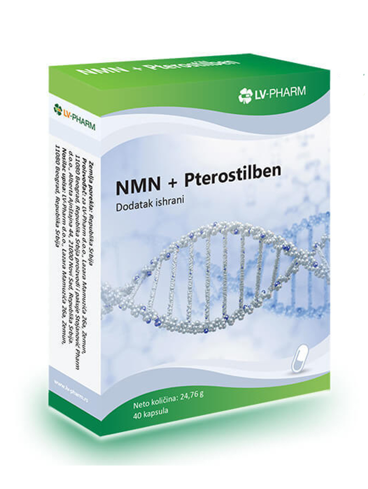 NMN+Pterostilben je moćna kombinacija koja doprinosi proizvodnji NAD+ namenjena za zdravo starenje, popravljanje oštećene DNK, održavanje nivoa energije i usporavanje procesa starenja.