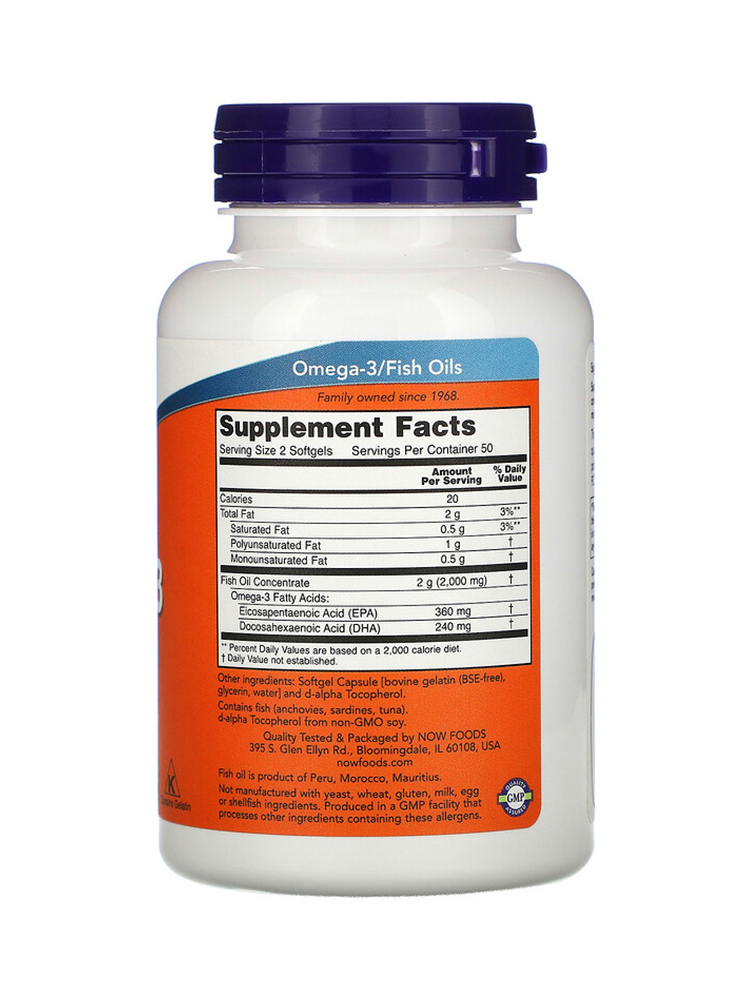 Omega-3 Molecularly Distilled 1000 mg, Now Foods, 100 softgel kapsula