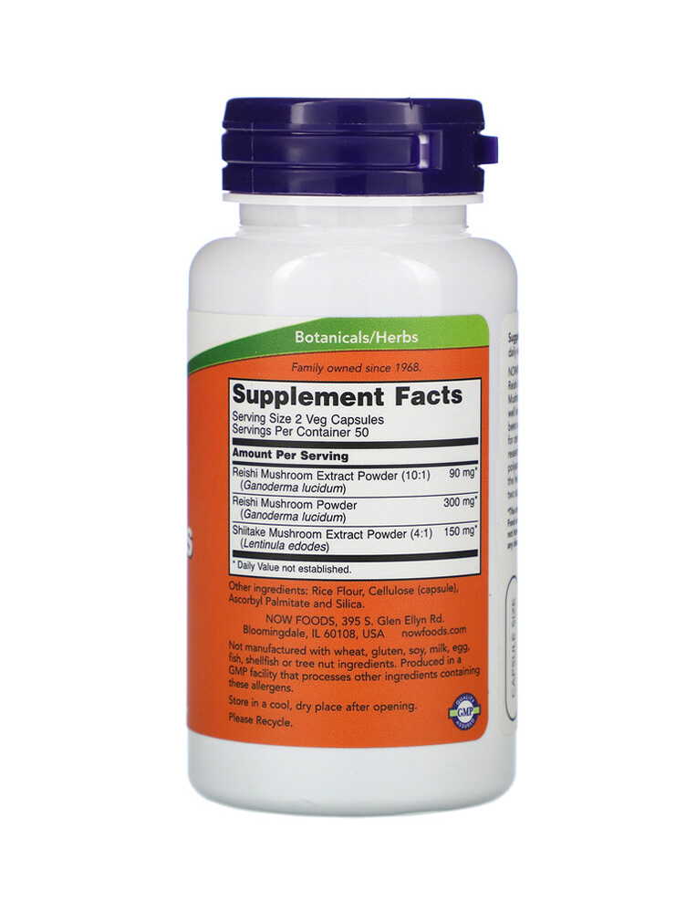 Rei-Shi Mushrooms 270 mg, Now Foods, 100 veg kapsula