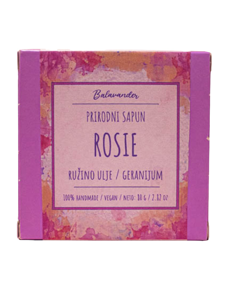 Balavander sapuni se izrađuju od posebno biranih prirodnih sastojaka i ne sadrže aditive i hemikalije. Rosie sapun na bazi ružinog ulja nežno čisti kožu pružajući joj svakodnevnu negu, zaštitu od bakterija i gljivičnih infekcija.