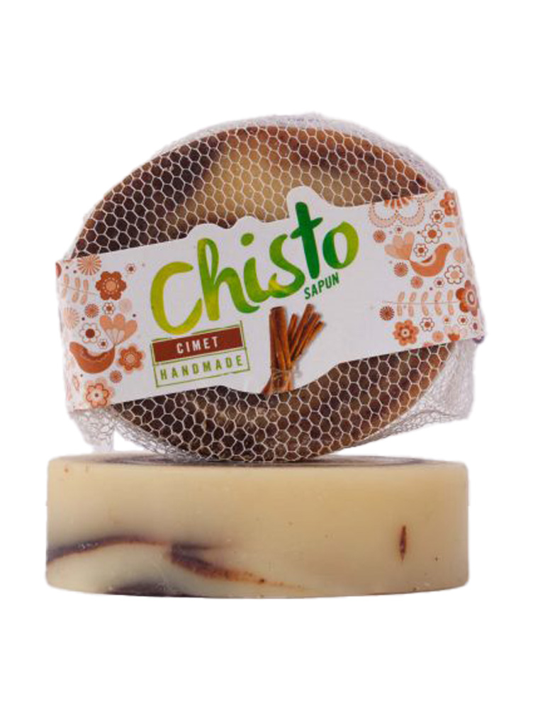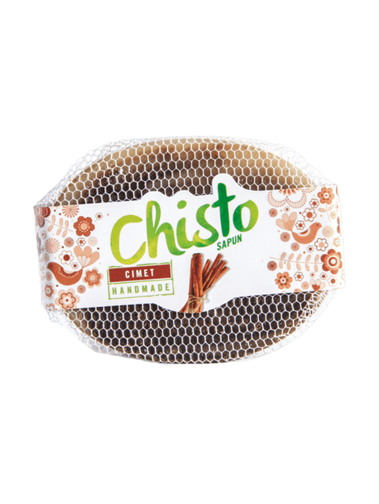 Sapun Chisto cimet bogat glicerinom i za sve tipove kože osim osetljive. Ručno rađen, upakovan u til.