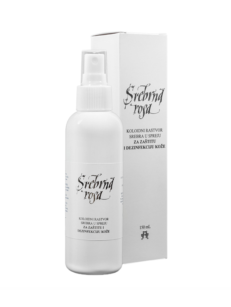 Srebrna rosa sprej za lice je namenjen za vraćanje tonusa koži i revitalizaciju kože i odličan je tretman za dehidriranu i opuštenu kožu lica, dekoltea i vrata. Sadrži jone srebra koji postižu dugotrajan dubinski efekat na koži lica i smanjuju znake umora. Joni srebra stvaraju nevidljivu elektrostatičku masku koja blokira taloženje čestica poput prašine i smoga i čine kožu lica baršunastom i sjajnom. Posle samo nekoliko korišćenja spreja, koža dobija svilenkast izgled i željenu mekoću. Srebrna rosa može se koristiti i za umivanje, idealna je kao podloga za šminku. Svakodnevna upotreba spreja takođe pomaže kod problema sa aknama.