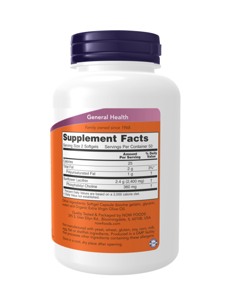 Sunflower Lecithin 1200 mg, Now Foods, 100 softegel kapsule