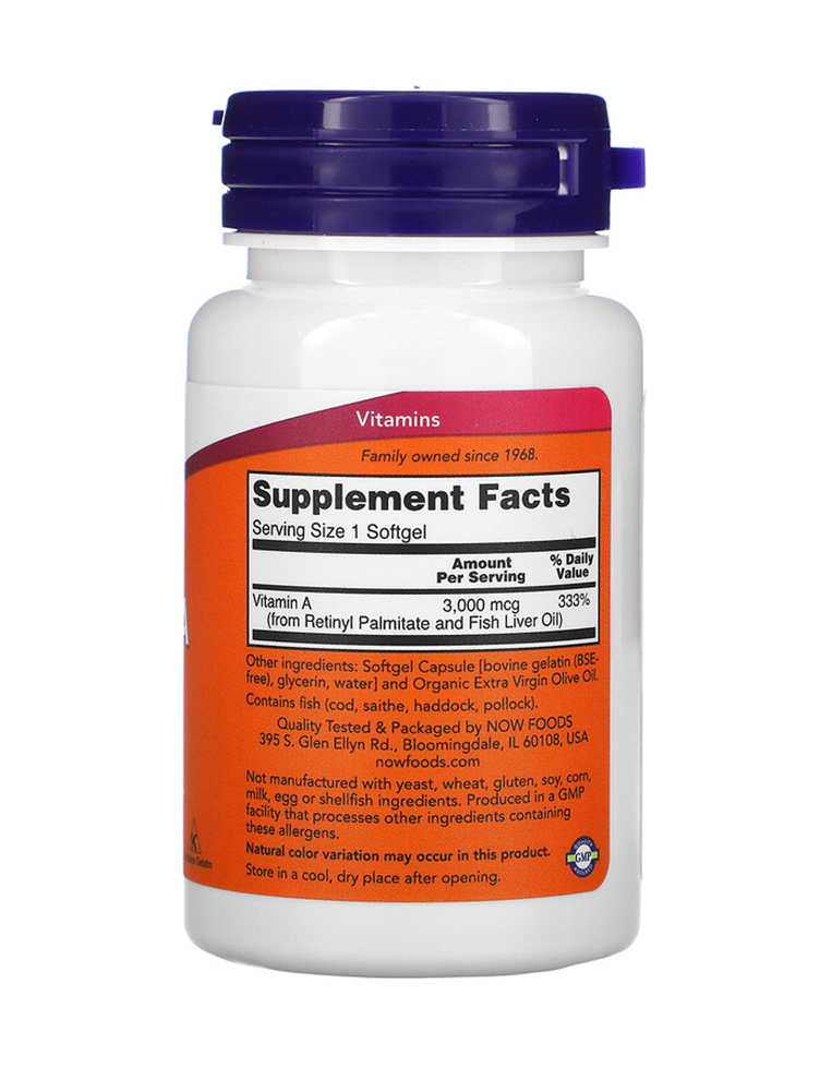 Vitamin A 10000 IU, Now Foods, 100 softgel kapsula