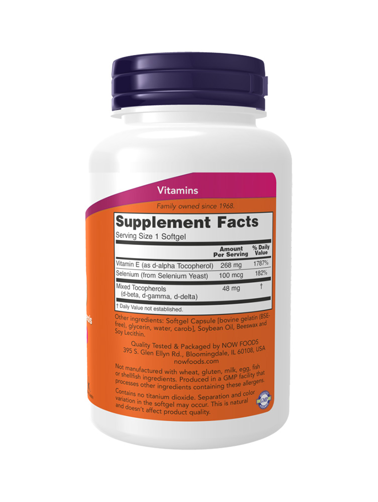 Vitamin E-400 D-Alpha with Mixed Tocopherols 268 mg (400 IU), Now Foods, 100 veg kapsula